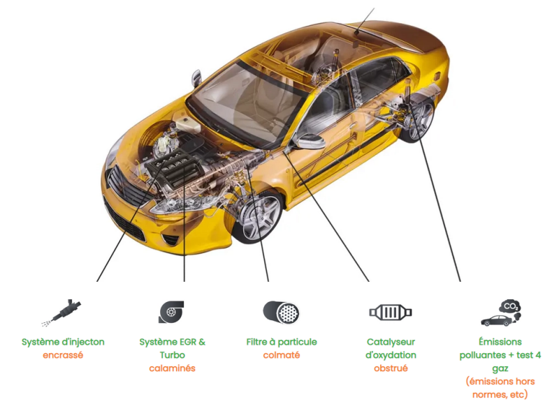 - Répercutions de la suie sur les autres parties du système de dépollution : catalyseur, FAP, etc...